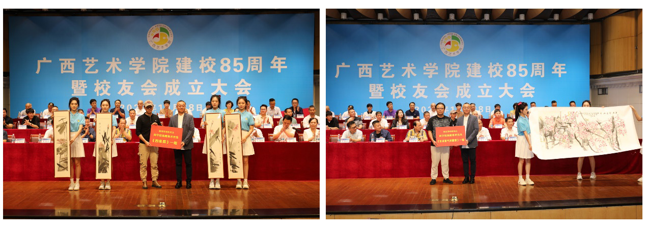 查丹明、杨志刚在会上共同为广西艺术学院校友会揭牌,标志着我校校友会正式成立。