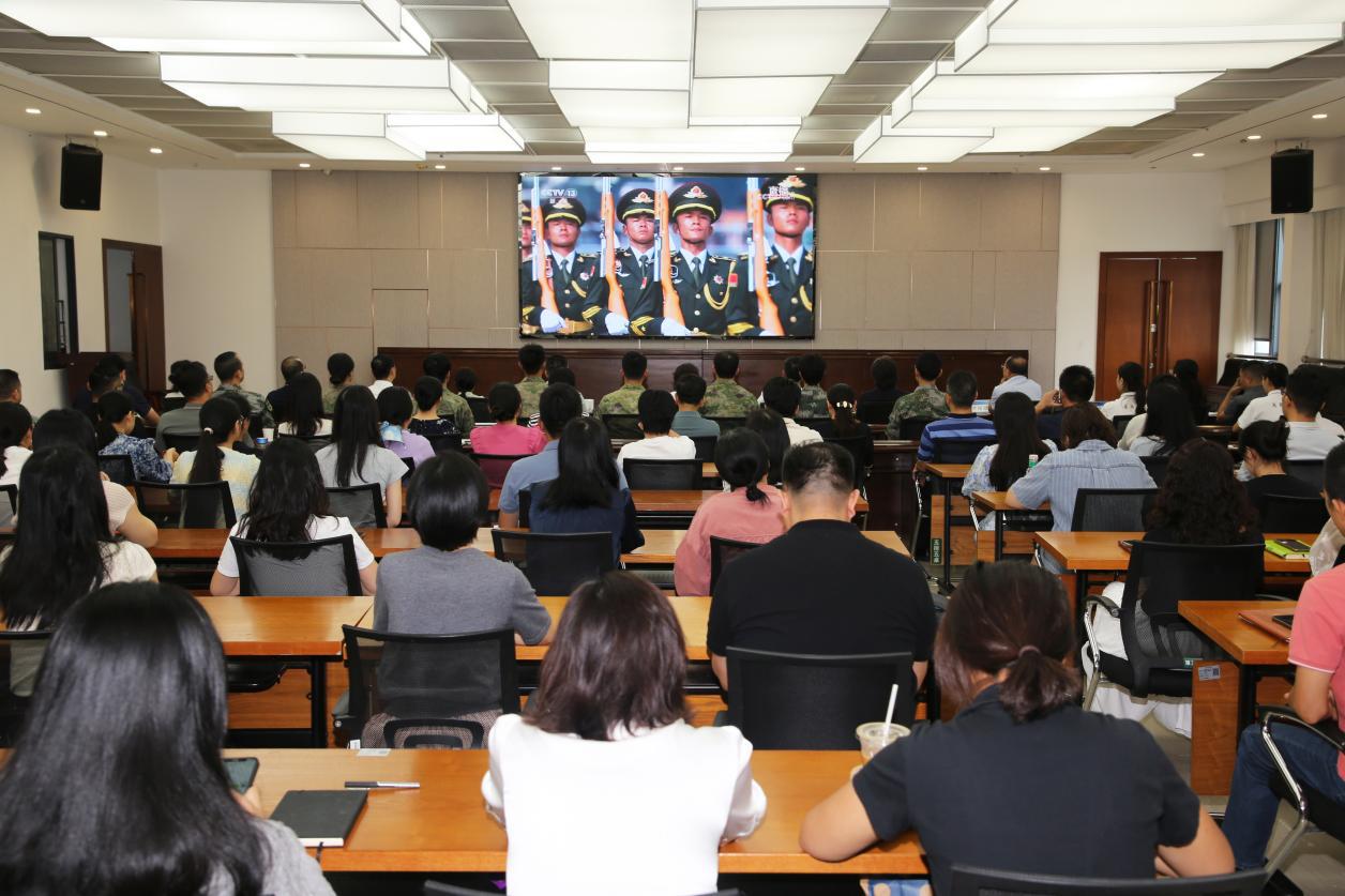 这是一次深刻的爱国主义教育、一堂生动的大思政课。多个教学单位以收听收看大会直播为契机,开展主题党团日活动,宣讲和阐释伟大抗战精神。附校结合“开学第一课”,把观看大会直播、学习习近平总书记重要讲话精神作为新生入学教育的重要环节和内容。观看直播结束后,机关党委多个支部开展了习近平总书记重要讲话精神的专题学习,音乐教育学院师生在直播结束后齐唱《强军战歌》《歌唱祖国》。广大师生迅速掀起了铭记历史、缅怀先烈、凝心聚力、奋发图强的热潮。