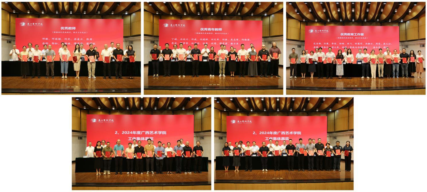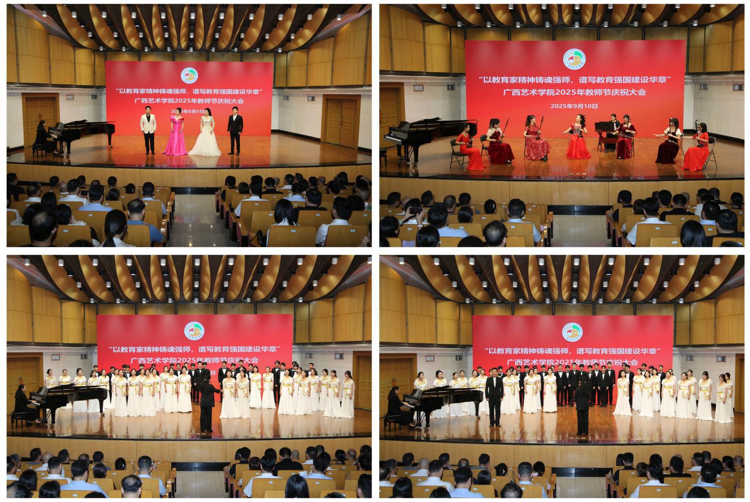 学校党委书记刘伯贤发表了热情洋溢的讲话,他首先传达了习近平总书记给全国特岗教师代表重要回信精神,并代表学校领导班子,向辛勤耕耘在教学、科研、管理和服务一线的全体教职员工,致以诚挚的节日问候,向为学校发展做出巨大贡献、付出巨大辛劳的离退休老同志们致以崇高敬意,向加入广艺大家庭的新任老师表示热忱欢迎,向今天受到表彰的集体与个人表示热烈祝贺。他指出,学校正处在高质量发展的关键时期,希望广大教职员工深入学习贯彻习近平总书记关于教育的重要论述和重要指示批示精神,增强责任感、使命感、荣誉感,大力弘扬教育家精神,切实以“教育家精神铸魂强师行动”为抓手,齐心协力、开拓创新,不断在各自岗位上奋力拼搏、再建新功。他勉励全体教职工,要心怀“国之大者”,不断厚植家国情怀,始终牢记为党育人、为国育才的初心使命,全面实施新时代立德树人工程,大力培育和践行社会主义核心价值观,不断强化广大学生对伟大祖国、中华民族、中华文化、中国共产党、中国特色社会主义的高度认同;要深耕专业领域,大力培养时代新人,主动顺应新形势新要求,深化教育综合改革,不断创新人才培养模式,聚焦“新文科”建设要求,推动传统学科与数字技术、人工智能深度融合,打造一批兼具艺术特质与科技含量的一流课程、一流专业,推动产教融合、科教融汇,加强校地、校企合作,提高人才培养与经济社会发展的适配度;要坚定文化自信,推动文化传承创新,结合新的时代条件传承和弘扬中华优秀传统文化、广西优秀民族文化,让优秀传统文化走进课堂、融入科研、见于创作,以艺术为桥梁深化与东盟国家的文化交流,在互学互鉴中讲好中国故事、广西故事,着力打好“民族牌”“东盟牌”;要注重团结协作,凝聚发展合力,面向未来要同心同德、群策群力,聚焦申博工作和学科建设高质量发展,大力整合各方资源,充分调动各方积极性、创造性,切实形成“十个指头弹钢琴”的协同效应和发展合力。