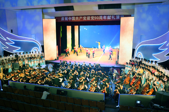 在自治区党委、自治区政府以及相关部门的关心支持下,5月6日晚,由我院师生创编并演出的音乐舞蹈交响诗《腾飞·北部湾》在经过两年的精心创作和排练之后,在会演中心举行最后一次联排,为两天后的首演进行最后的准备。